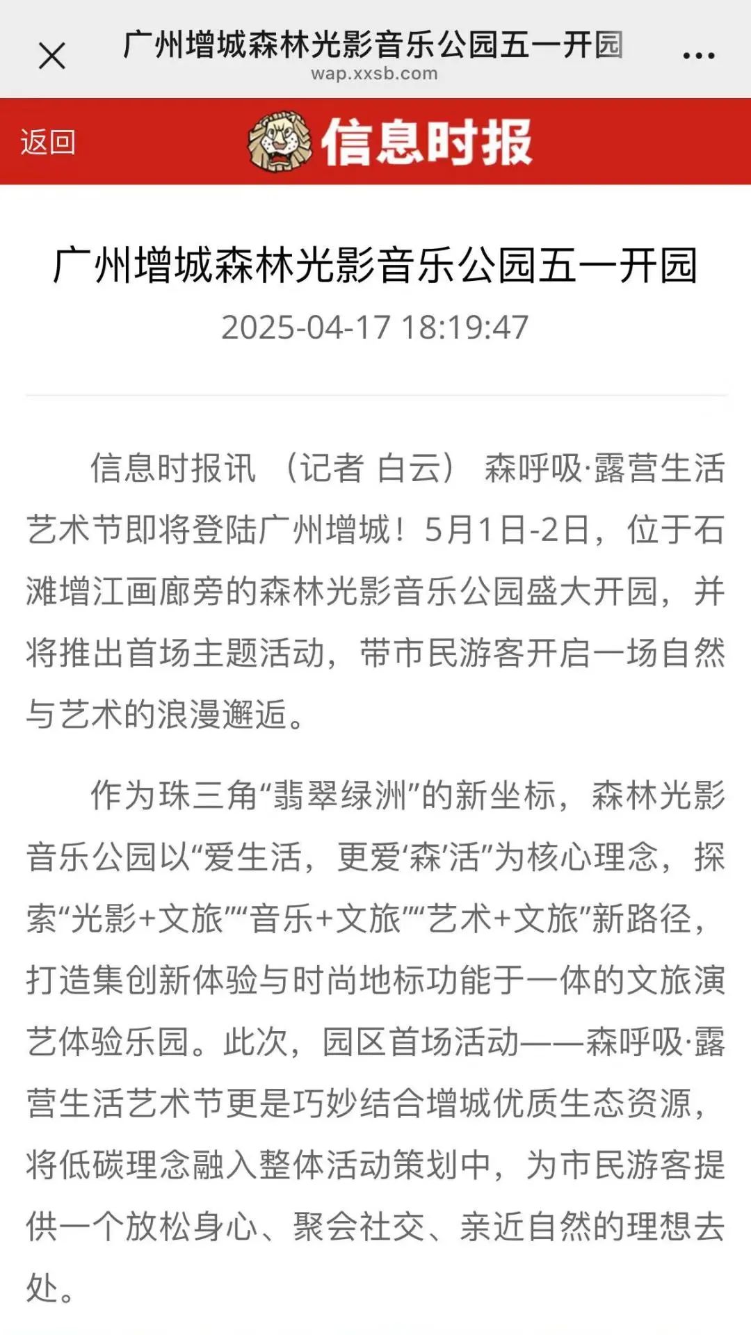 自官宣以來(lái),光明日?qǐng)?bào)、羊城晚報(bào)、南方都市報(bào)、廣州日?qǐng)?bào)、新快報(bào)等主流媒體集體聚焦,2025年“灣區(qū)音樂(lè)匯”系列活動(dòng)森呼吸·露營(yíng)生活藝術(shù)節(jié)已引發(fā)五一珠三角文旅熱潮。