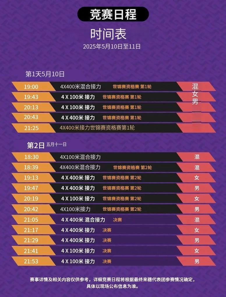 距離2025年世界田聯(lián)接力賽還有1天!