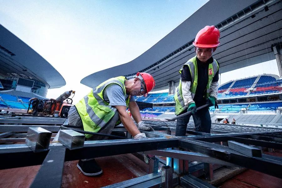 面對持續(xù)高溫,十五運會和殘?zhí)貖W會開幕式項目總監(jiān)區(qū)彩芬介紹,團隊采取多項措施保障施工安全,為每個工程人員配備防暑物資,并在現(xiàn)場設(shè)置多個“清涼驛站”,提供降溫飲品。“我們不僅要確保工程進度,更要保障每一位施工人員的健康安全,這是我們對施工人員最基本的責任。”區(qū)彩芬強調(diào)。