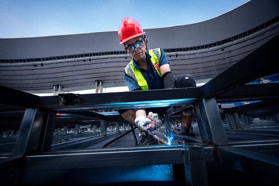 “時間緊、任務(wù)重,我們每天從早上7點輪班做到晚上9點半,無間隙施工。”張曉凱表示,廣州夏季高溫多雨,臺風(fēng)天氣頻繁,給露天作業(yè)帶來極大挑戰(zhàn)?!坝袝r剛搭好的結(jié)構(gòu)遇到暴雨就得緊急加固,臺風(fēng)預(yù)警一來更要全員應(yīng)急響應(yīng)。但再難我們也要頂住,必須保質(zhì)保量完成任務(wù)。”