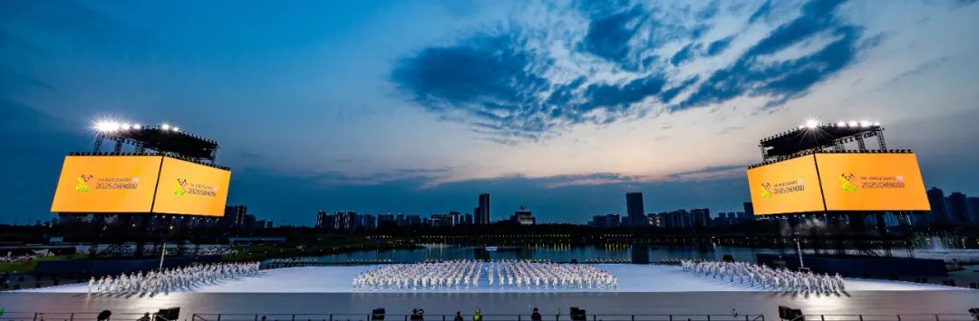 盛典最“成都”之處莫過于此。不同于其他賽會(huì)開幕盛典在場(chǎng)館內(nèi)舉辦的“嚴(yán)謹(jǐn)感”,成都世運(yùn)會(huì)的開幕式選擇了“天府之檐”前的開放區(qū)域,是完全嵌入在城市開放場(chǎng)景中的全新嘗試。伴著自然湖景與綠地,映著晚霞與星空,一切演繹,一切參與,都將融于這座公園城市的斑斕色彩之中。